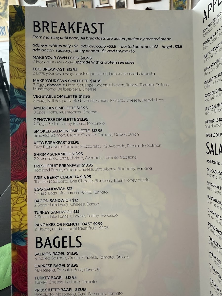 For bagel enthusiasts, La Rosa Cafe serves a variety of options, including the decadent Salmon Bagel and the fresh Caprese Bagel, each priced at $13.95. Breakfast lovers will delight in their hearty offerings, with dishes like fluffy scrambled eggs paired with avocado and turkey for $9.99.